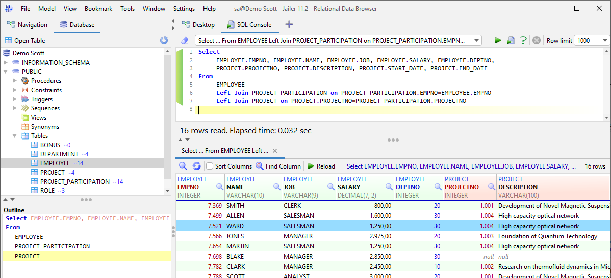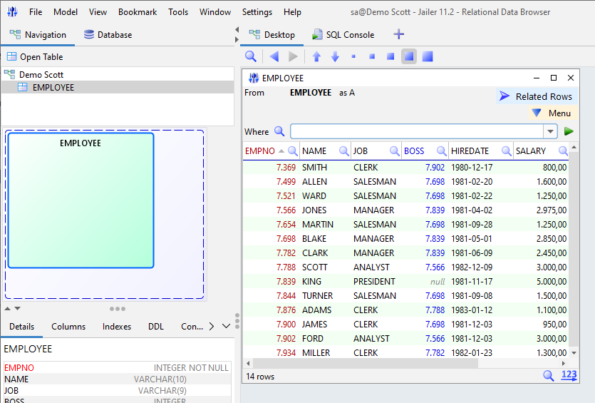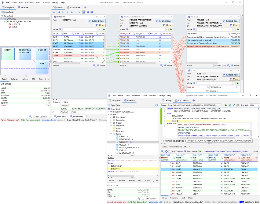 Jailer是一款用于数据库子集和关系数据浏览的工具,支持按照表之间关系浏览数据库、生成 DML 拓扑关系等功能。可用来从生产数据库中提取出,支持测试一条完整业务线所需的数据库表和数据。它从您的数据库创建小切片,并允许您按照关系在数据库中导航。 非常适合创建测试数据的小样本或使用相关生产数据进行本地问题分析。