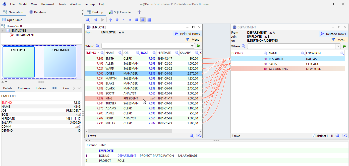 - 数据浏览器允许您按照表之间的关系(基于外键或用户定义)浏览数据库。