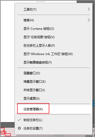 4.最下方的空白任务栏,右击,任务管理器
