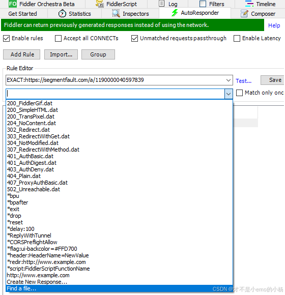 Enable rules的作用是在 Fiddler 中,Enable rules 的作用是激活自动响应器(AutoResponder)功能。当勾选此选项时,Fiddler 会根据用户在自动响应器中设置的规则来处理 HTTP 请求和响应