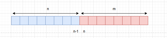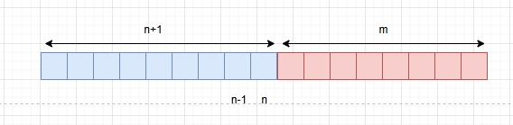 当数组元素个数为奇数时,此时左右数组的个数就不同了,要么左半数组的个数比右半数组多一个,要么反过来,让右半数组比左半数组多一个。我们可以规定让左半数组的个数比右半数组多一个,即n==m+1。