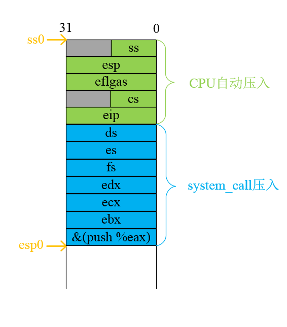 2.1.1 fork()API 刚进入内核时进程 0 的内核栈的样子
