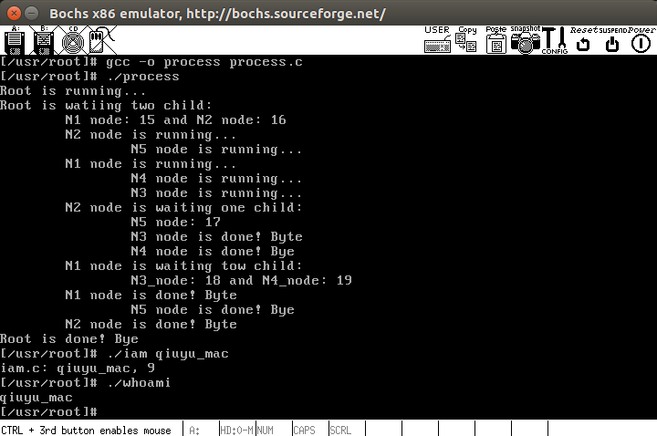 基本任务是在内核中维护一个日志文件/var/process.log,把操作系统启动到系统关机过程中所有进程的运行轨迹都记录在这一 log 文件中