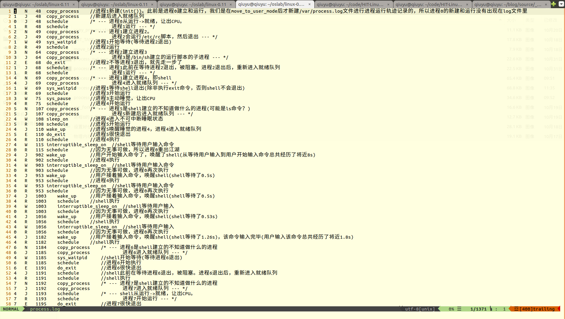 如上图所示,process.log 文件中加入了我自己关于进程运行状态的分析。