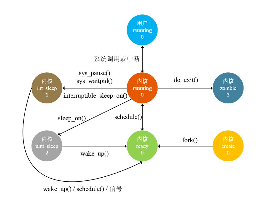 我们依据上图沿着进程从新建到退出的整个生命期来看下其中涉及进程状态切换的各个内核函数的作用。
