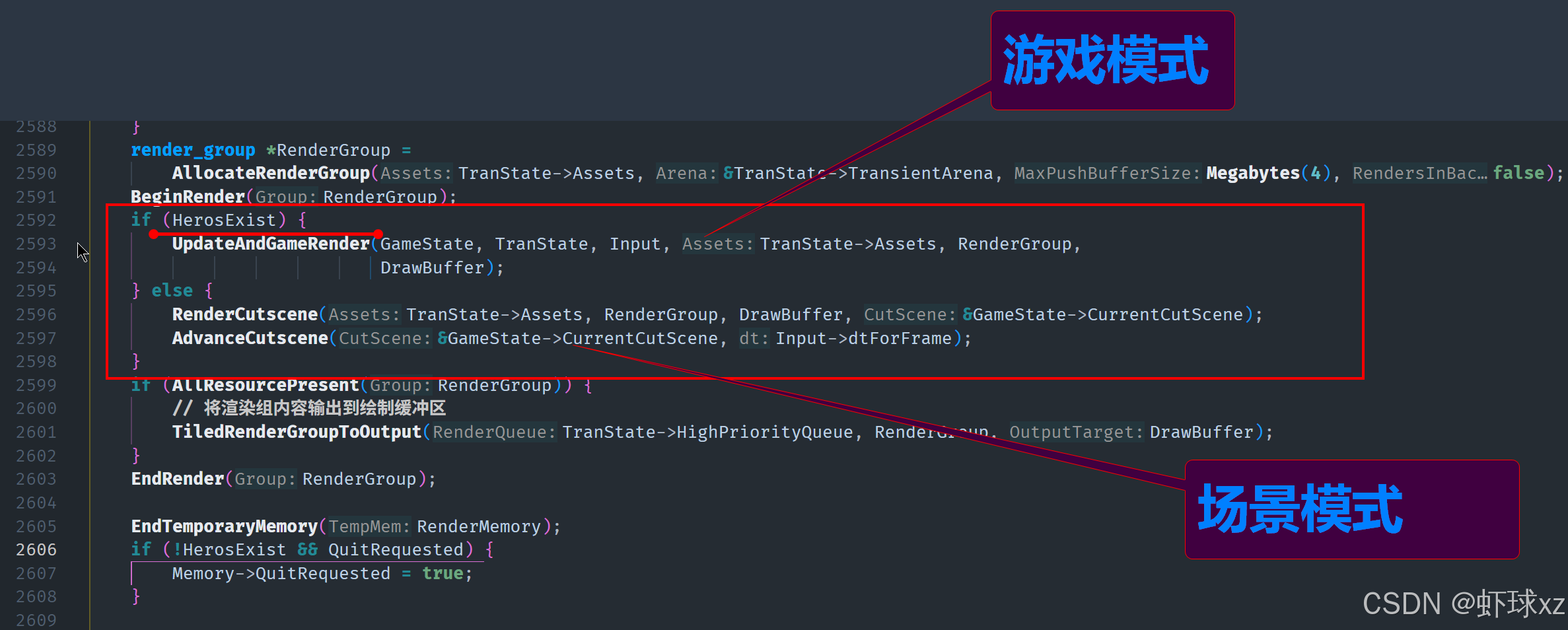 游戏主循环将会根据当前游戏模式(