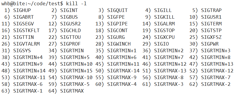 每个信号都有⼀个编号和⼀个宏定义名称,这些宏定义可以在signal.h中找到,例如其中有定义