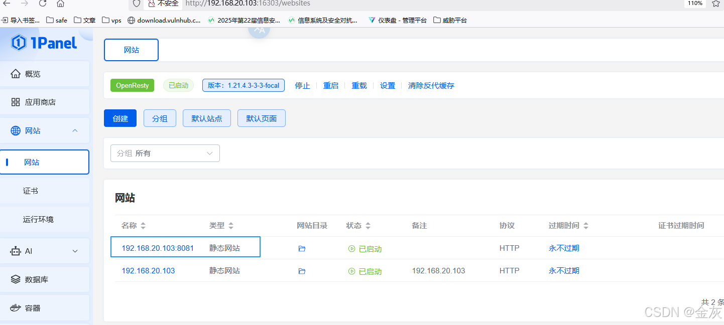 web服务,被waf保护, 雷池waf--防护应用--找到80端口的详情--应用路由/静态资源