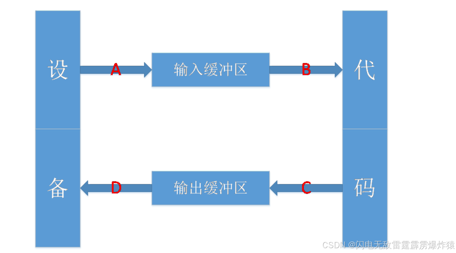 C语言借助了相应的缓冲区来进行输入与输出,如下图所示:
