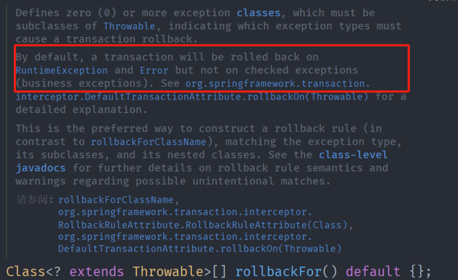 如果想要修改默认的回滚策略,可以使用 @Transactional