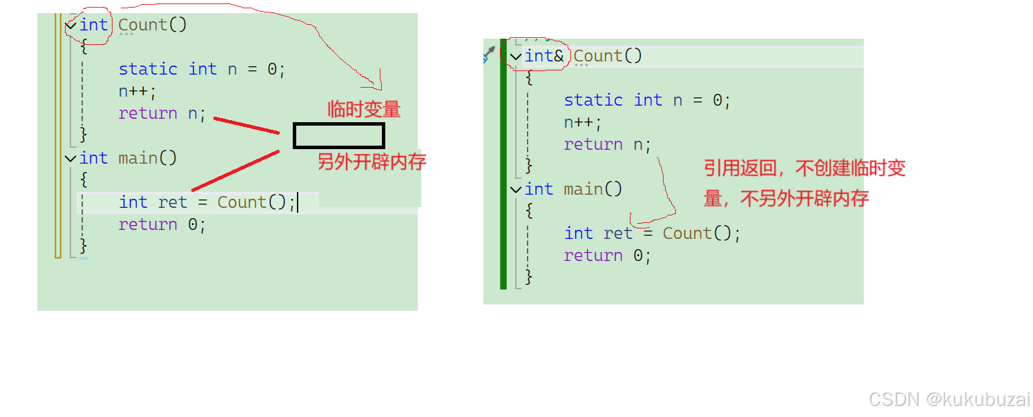 {int& ret = fun(); //错误const int& ret = fun();//正确}