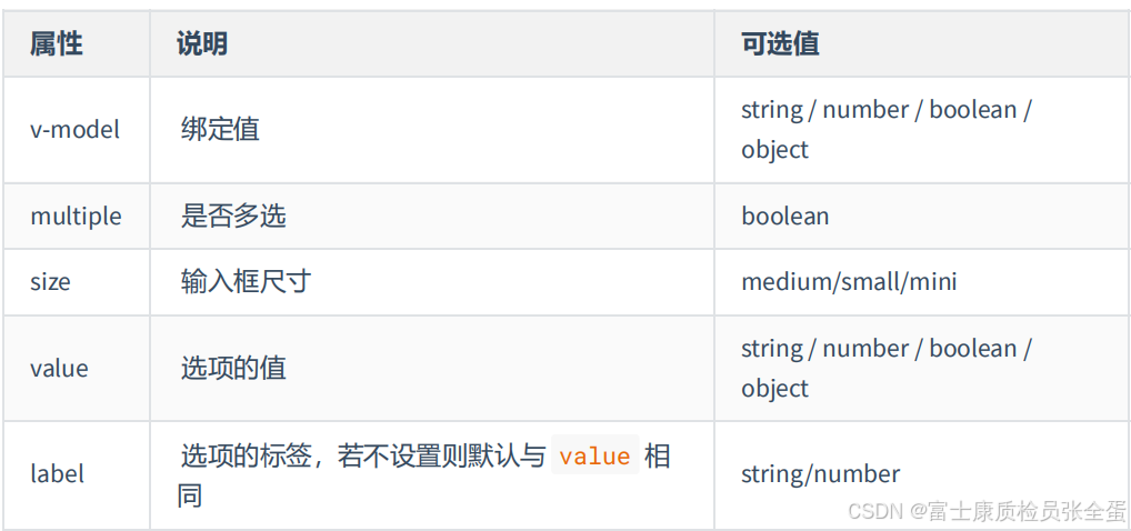 label其实展示的内容,value就是展示的内容选择了之后对应的值。v-model的值为当前被选中的el-option的 value 属性值