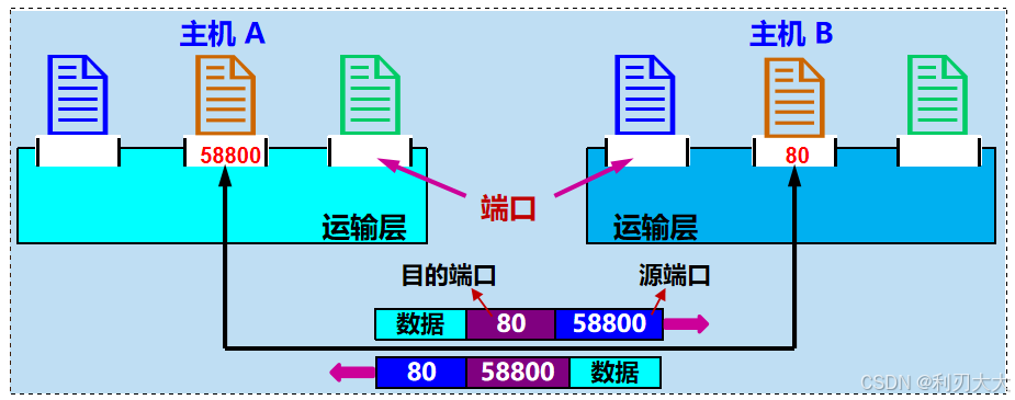 端口号(Port)标识一个主机上进行网络通信的不同的应用程序。当主机从网络中获取到数据后,需要自底向上进行数据的交付,而这个数据最终应该交给上层的哪个应用处理程序,就是由该数据当中的目的端口号来决定的。