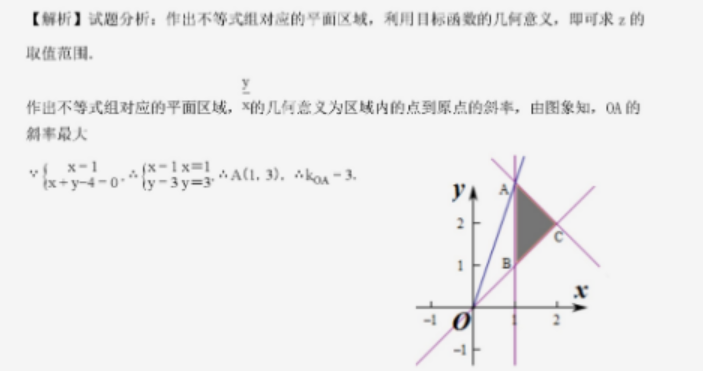 x-1>=0; x-y<=0; x+y-4<=0,若x, y满足约束条件,则y与x的最大比值为()。