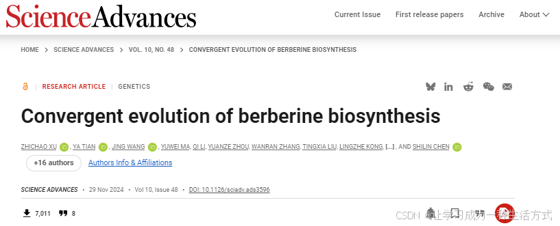植物专用代谢物被视为复杂性状,可以通过研究其进化轨迹来理解(44)。相同的代谢特征经常在远缘物种中独立进化出现,包括平行进化和趋同进化。例如,金丝菊和大麻中由同源酶催化的大麻素生物合成的平行进化(45)。尽管多项研究已报道了咖啡因(39)、藏红花色素(46)和稻米乳酸酮(47)生物合成的趋同进化,但它们在不同谱系中的生物合成酶可能具有同源关系。参照平行进化和趋同进化的区别(48),我们的研究展示了一个经典的趋同进化案例,在两个远缘谱系中——小檗属和黄柏,两个完全非同源的酶和不同的蛋白质折叠,尤其是具有NMT催化功能的OMT基因和具有小檗碱桥酶活性的CYP450基因。这些数据表明,酶的新功能化是推动结构修饰和多样化的驱动力。