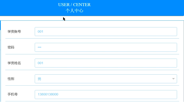 学员登录后可对个人信息进行管理,个人中心界面展示如图5-7所示。