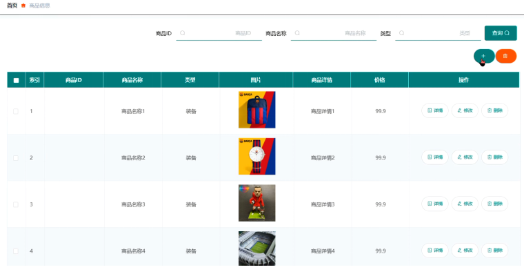 管理员可增删改查商品信息,商品信息管理界面展示如图5-12所示。