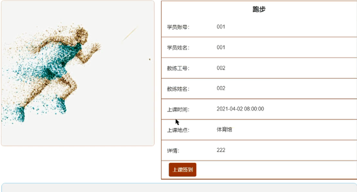 学员可选择课程安排查看详情信息,登录后可进行上课签到操作,课程安排详情界面展示如图5-5所示。
