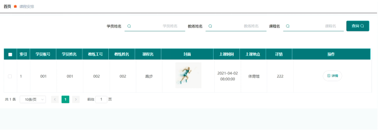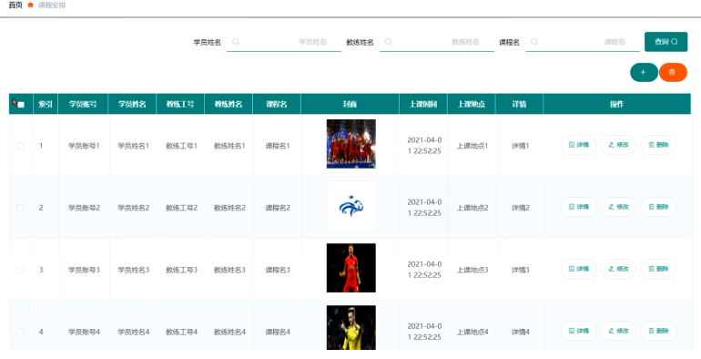 教练登录后可查看课程安排信息,课程安排界面展示如图5-14所示。