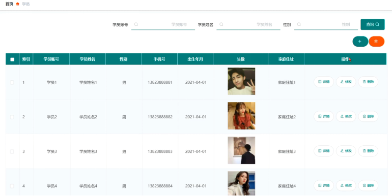 管理员可查看、添加、修改和删除学员信息,学员管理界面展示如图5-11所示。