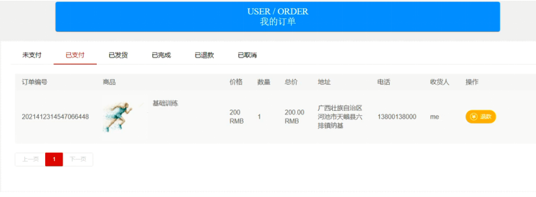 学员可进入我的订单界面查看个人已有订单信息,其界面展示如图5-8所示。