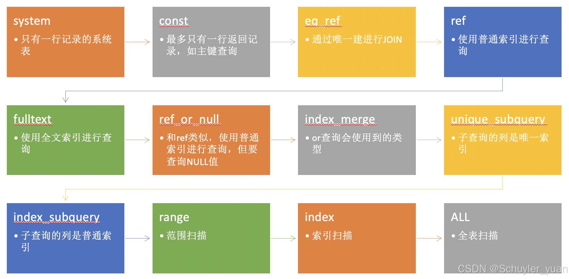 进行SQL优化,索引将是数据库用来提高性能的最常用工具。所有MySQL列类型可以被索引,对相关列使用索引是提高SELECT操作性能的最佳途径。