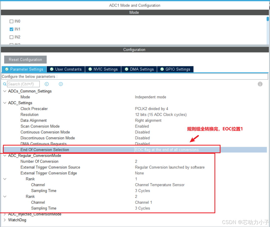 EOC中断:当 所有常规通道均完成转换 后,触发EOC(转换结束)中断。