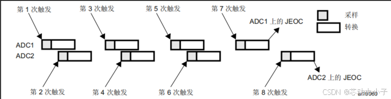 ● 发生第二次触发时,将转换第一个注入 ADC2 通道