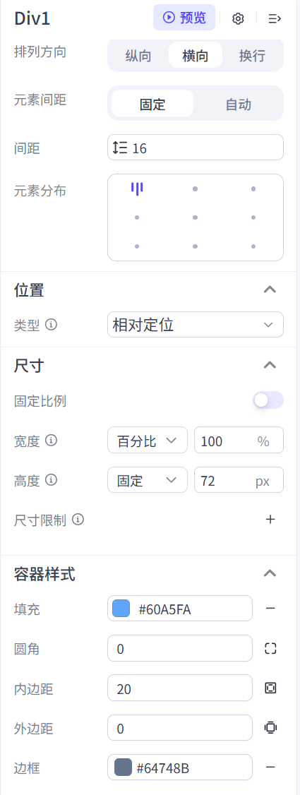想要实现这样的页面结构就需要使用容器组件。容器组件是用来进行页面布局的,可以把页面划分成不同的区域和排列顺序。容器组件中可以添加其他各种组件例如文本组件、下拉组件、按钮组件等。