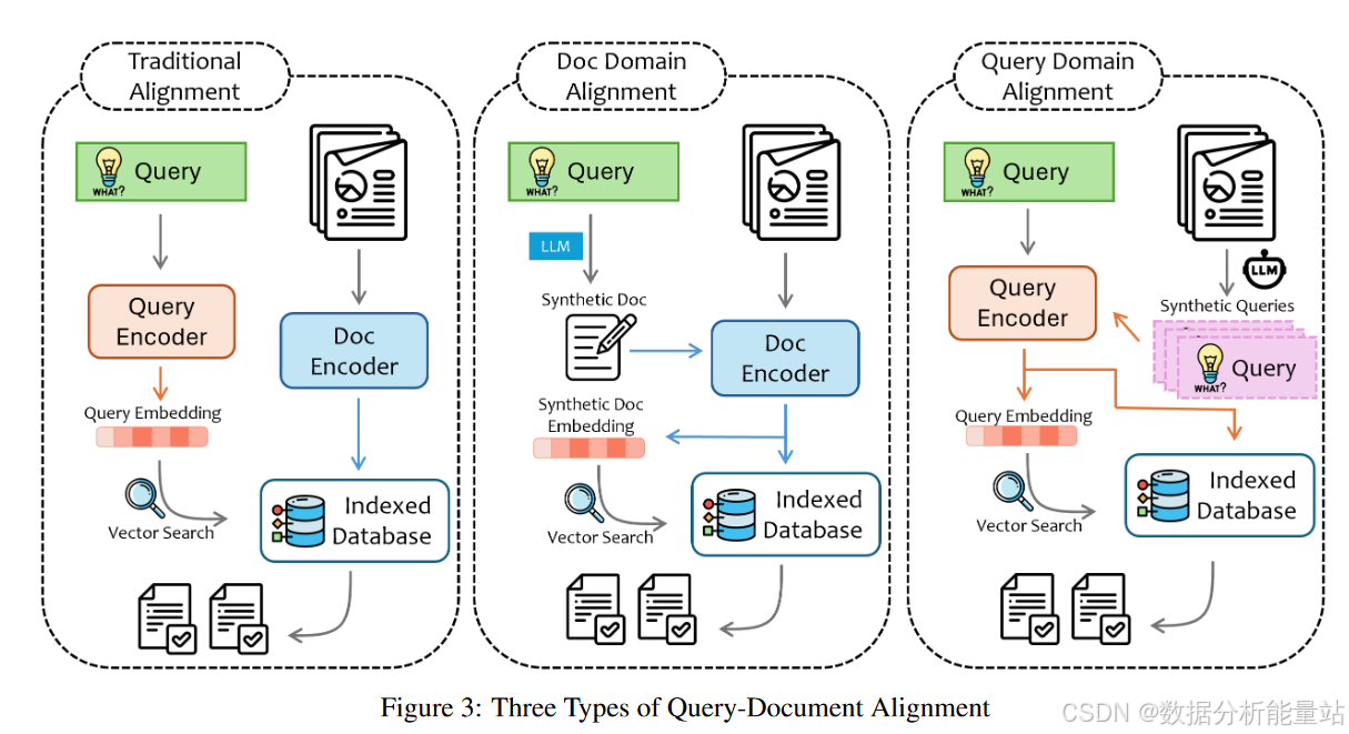 数据检索:包括为高效搜索而对处理过的数据编制索引,将查询与相关文档段对齐,以及对检索到的信息重新排序和过滤,讨论了llm2vec和llama2vec等密集检索方法。