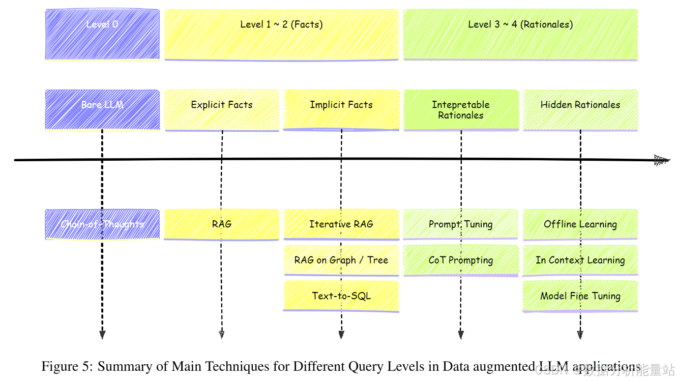 在数据增强的大型语言模型(LLM)应用环境里,之所以要依据查询的复杂程度以及和数据交互的深度来对查询进行分层,是因为这样做能让我们清晰地知晓LLM在面对不同查询时,需要动用何种程度的“思考”能力,也就是认知处理过程,去生成准确又贴合需求的回复。从简单直接获取已知事实,到挖掘深层次、隐含的知识来作答,每一层级的提升都意味着对LLM要求的提高,涉及的任务也变得越发复杂精细。