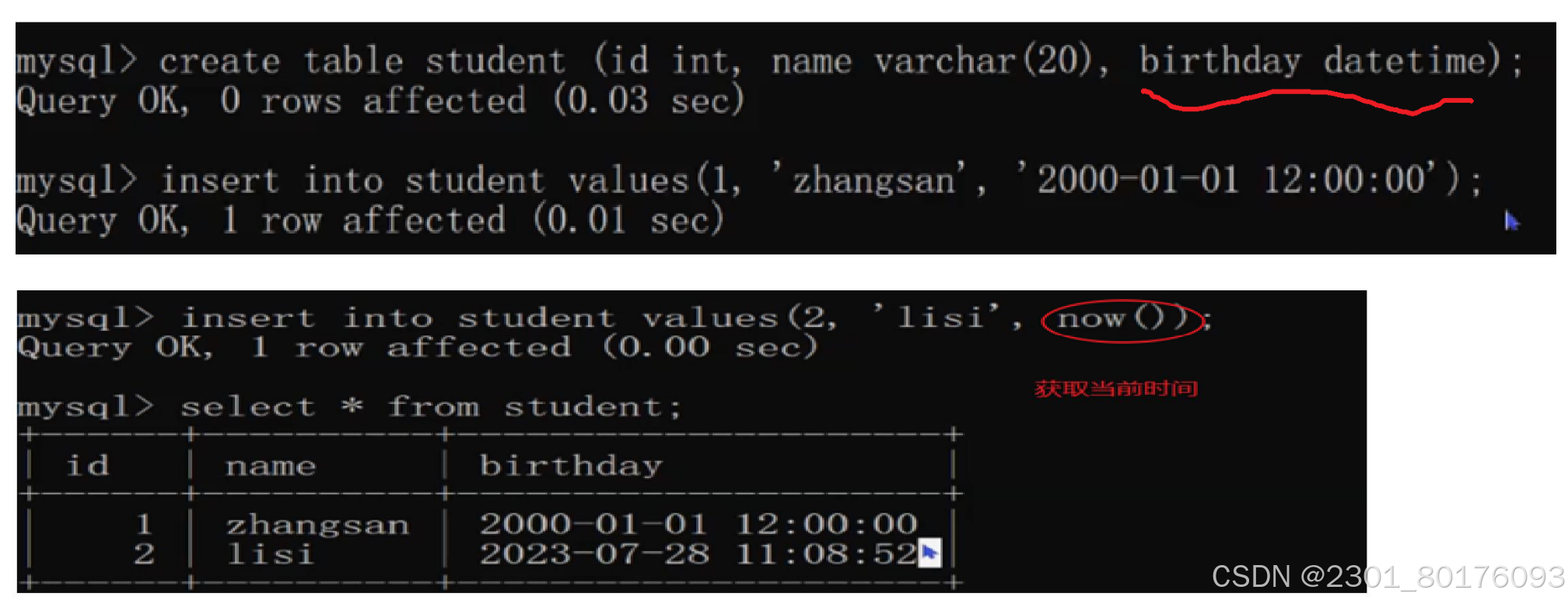-- 创建考试成绩表create table exam_result (id INT,name VARCHAR(20),chinese DECIMAL(3,1),math DECIMAL(3,1),english DECIMAL(3,1)