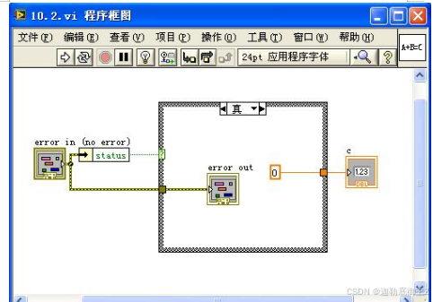 2. 写一个能够传递错误的子VI,子VI的功能是a+b=c,当有错误输入时,错误直接输出,c输出为0。当无错误输入时,进行正常计算。