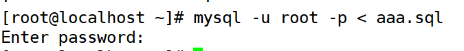例如,执行以下操作可以从备份文件 aaa.sql 中将表导入aaa库。其中“-e”选项是用于指定连接 MySQL 后执行的命令,命令执行完后自动退出。