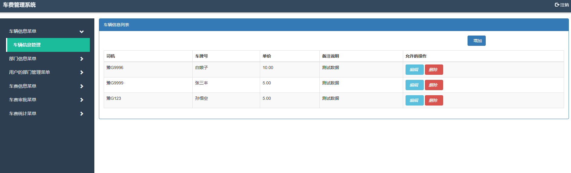 - 维护车辆基本信息(车牌号、单价、备注等)