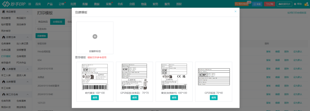 对于出口不同地区的产品,需要按照规定打印合标签贴箱发货,方可进行正常售卖。妙手提供多种不同尺寸的合规标签模板,方便卖家一键套用。