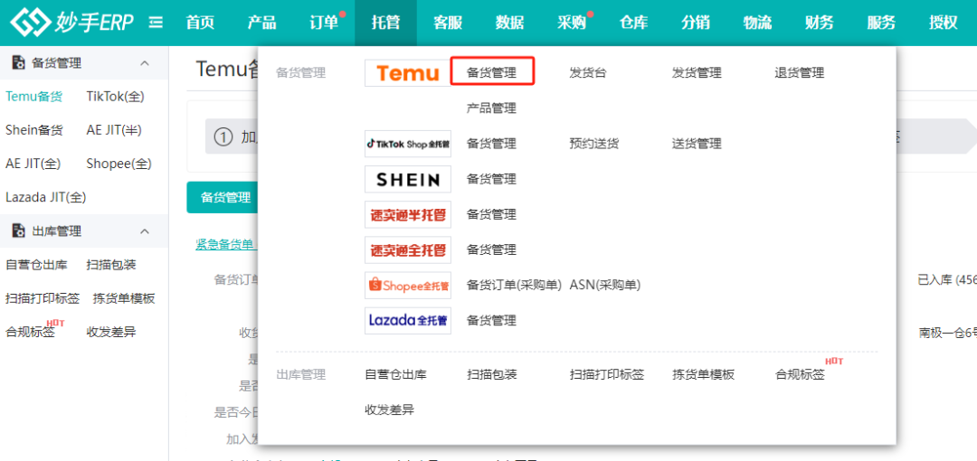 除了TEMU全托管,妙手ERP也已上线TikTok Shop全托管、AliExpress速卖通半托管/全托管、SHEIN全托管、Lazada JIT全托管、Shopee全托管等平台备货功能。并且,妙手支持同一页面统一处理以上多个托管平台的产品库存,全方位帮助卖家朋友高效运营,制胜旺季!