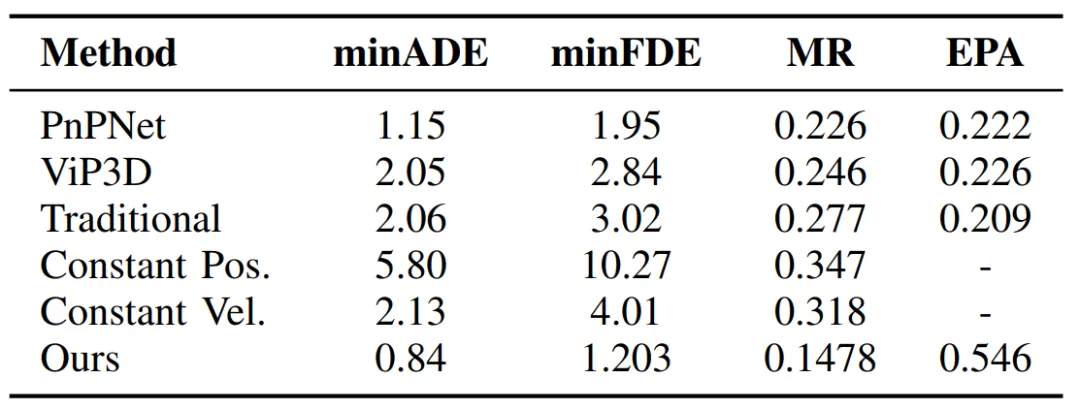 5.2 运动指标评估在本文中,我们提出了多种速度计算方法,包括差分法、卡尔曼滤波和曲线拟合等。这三种方法各有优缺点。此外,速度的计算并不限于上述几种方式。我们希望能够提供一个完善的评估指标,鼓励大家不仅关注轨迹连接的准确性,还要关注在正确连接后,如何更好地输出下游控制所需的速度等信息。