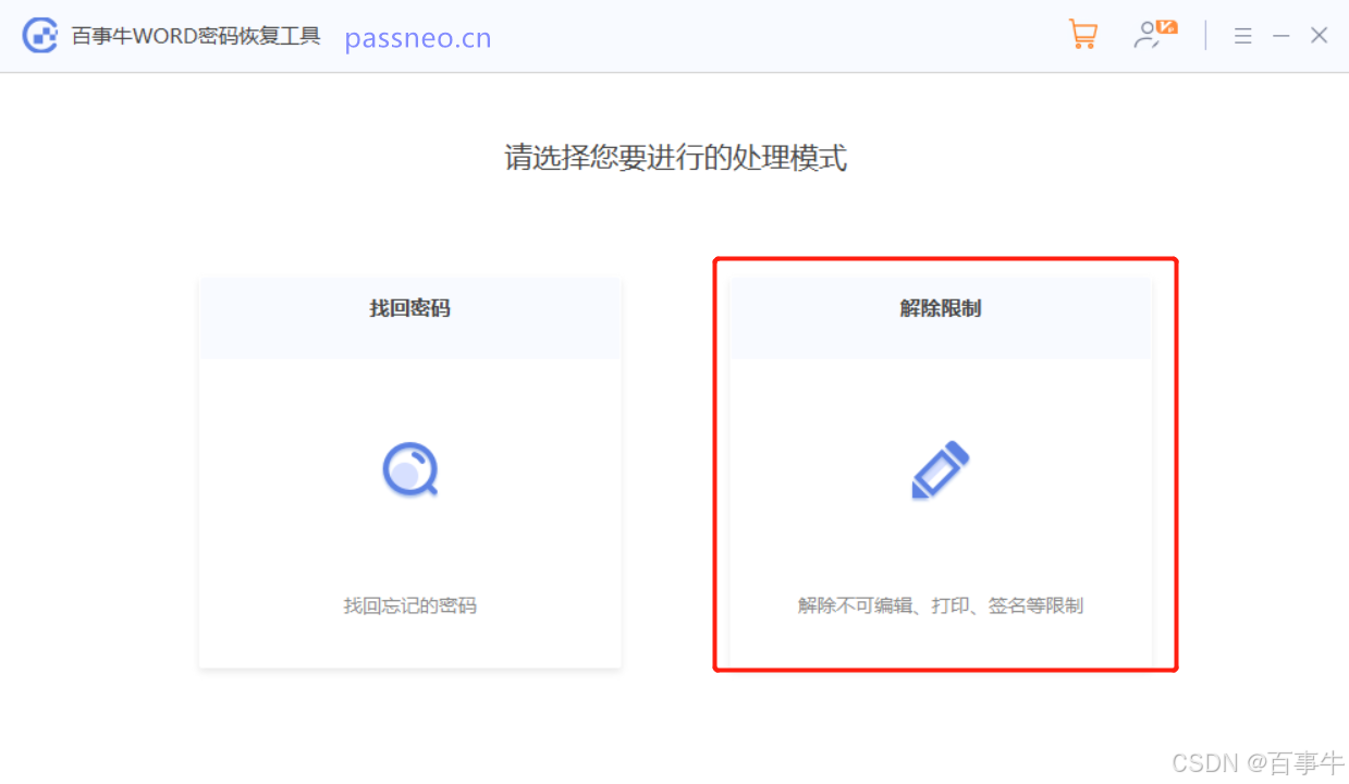 如果不小心忘记了原本设置的限制密码,可以借助第三方来解除限制。以小编使用的Word工具为例,工具里的“解除限制”模块,可以不用密码,直接去除Word文档的限制密码。