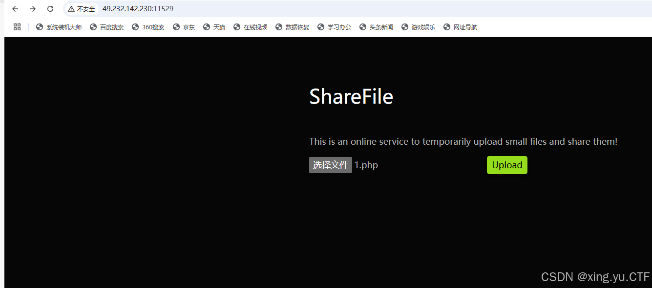 打开之后就是上传文件的界面了,我们上传一个1.php文件,里面是我们的木马,