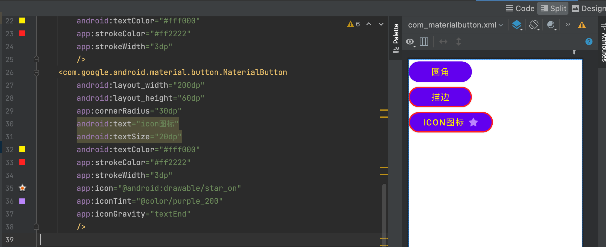 iconTint是设置颜色,padding是设置内边距,layout_width设置成wrap_content是自适应宽度