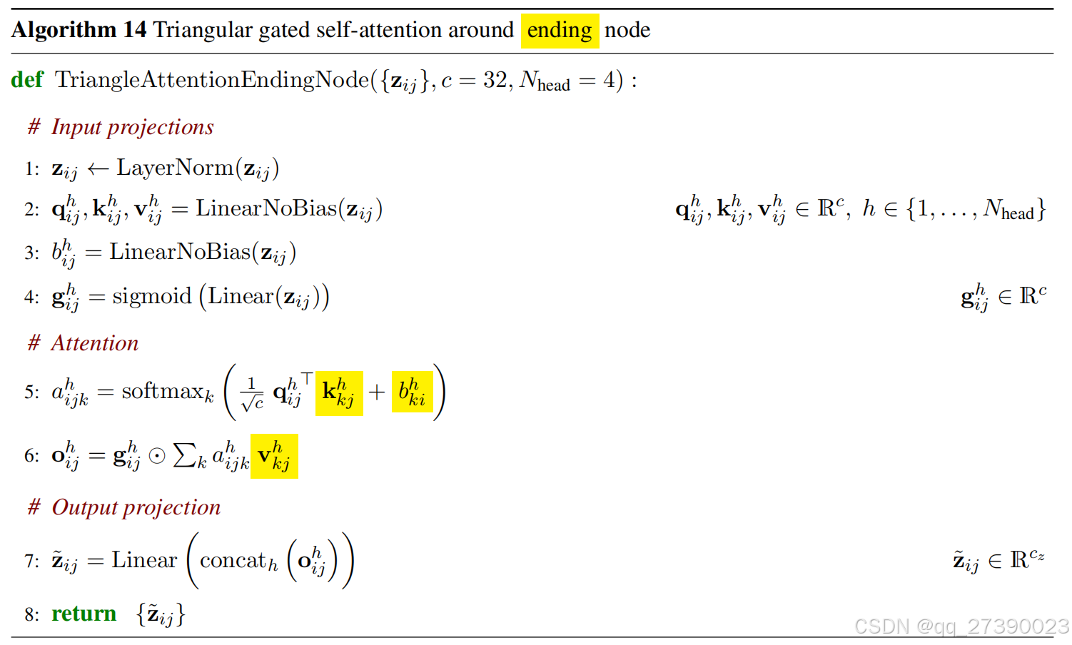 TriangleAttentionEndingNode:- 对应 AlphaFold 算法中的终止节点(