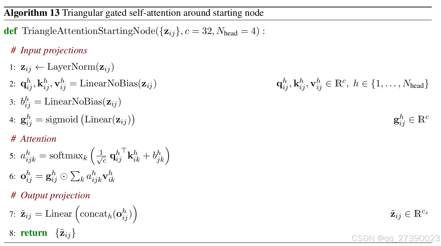 TriangleAttentionStartingNode:- 对应 AlphaFold 算法中的起始节点(