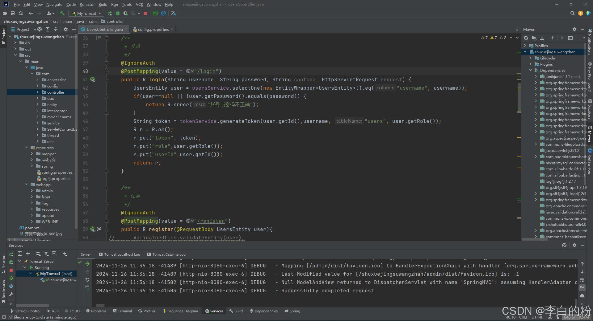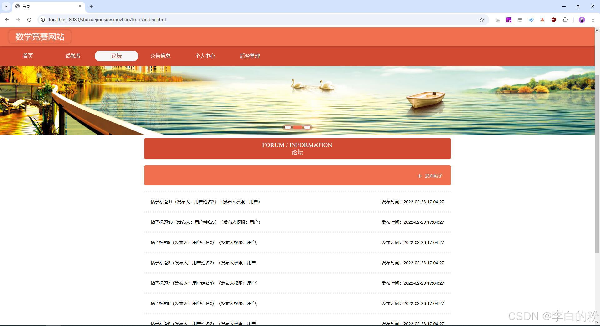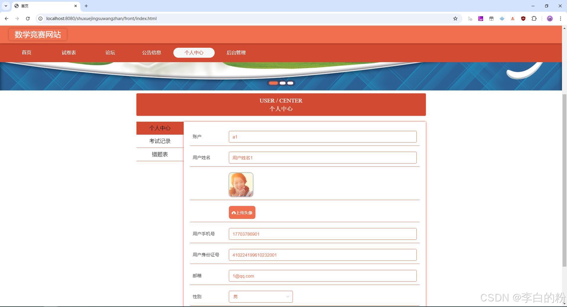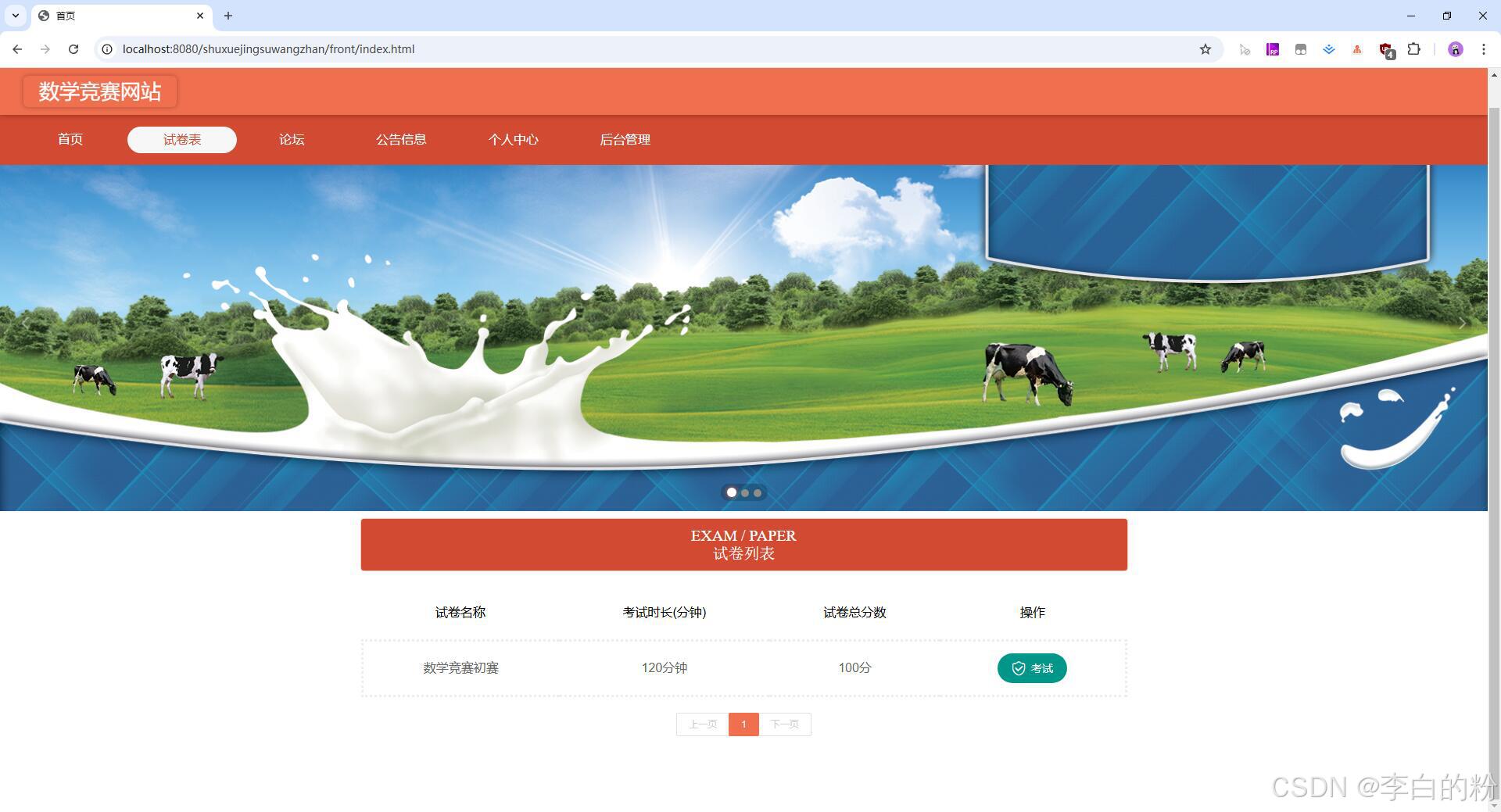 基于ssm的数学竞赛网站,前端采用的是html+vue,后端采用spring+springmvc+mybatis,系统采用MVC三层架构,系统分后台管理与web端页面,功能齐全,代码简洁易懂,适合小白学编程...