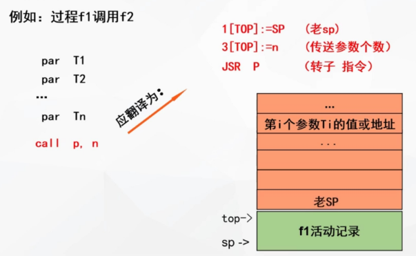 活动记录中可配有静态链和嵌套层次表两种方式来实现。