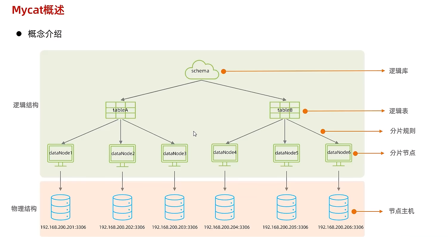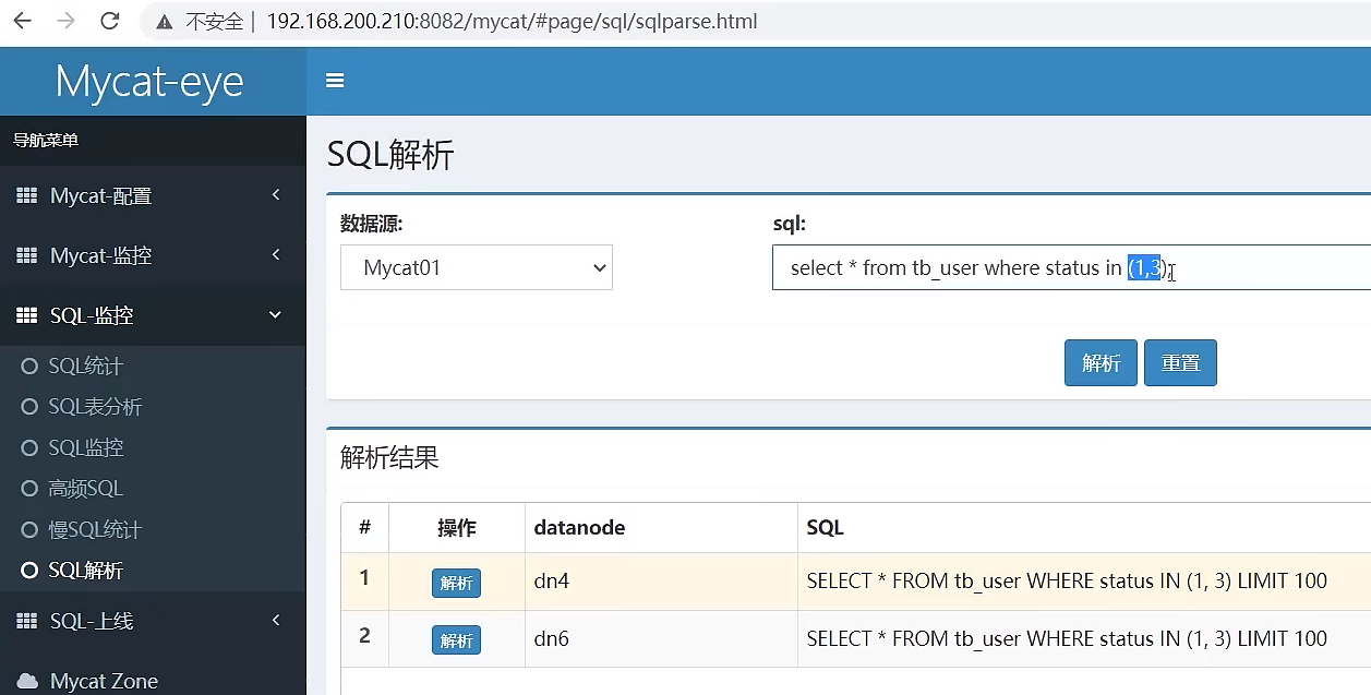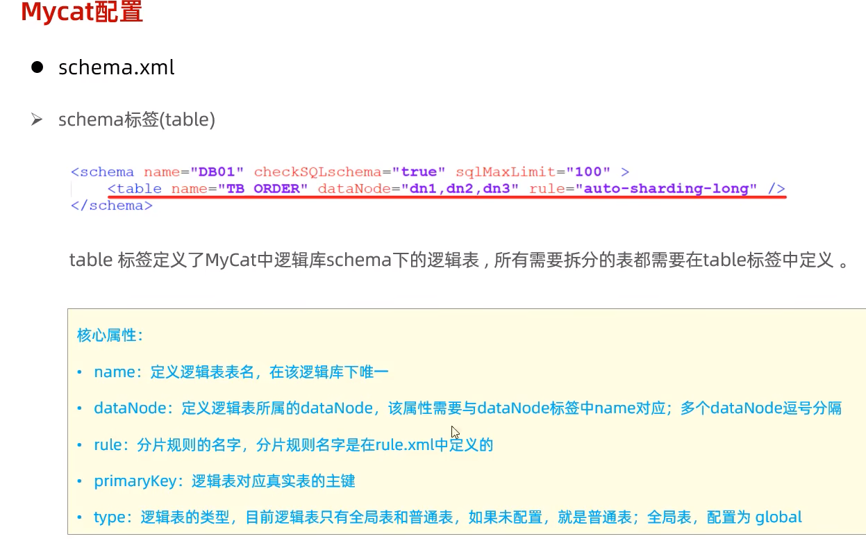 注意:没有配置逻辑表时Mycat会查询对应节点数据库的表来作为逻辑表