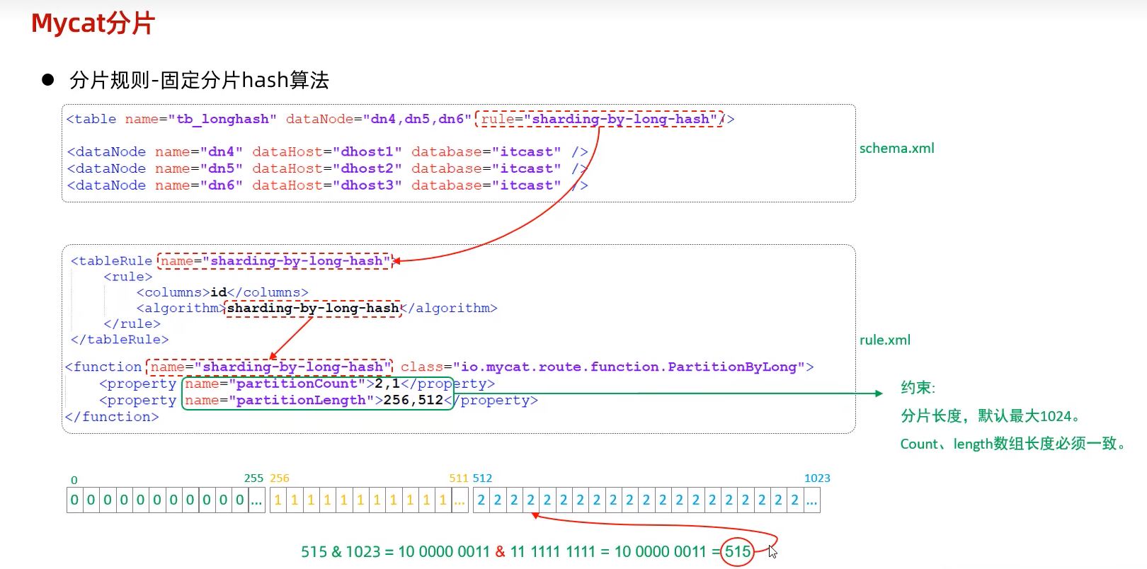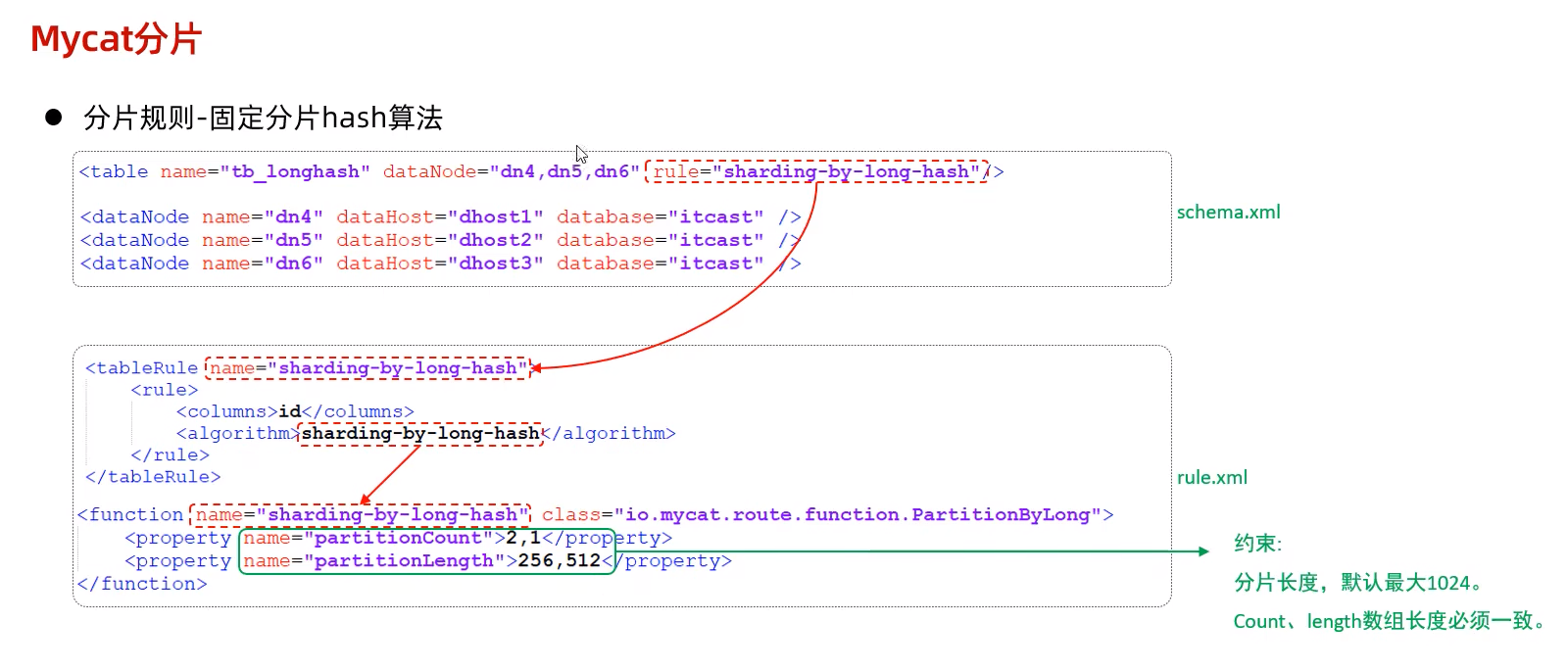 然后配置其他文件,最后重新启动并连接上数据库(或者重新加载Mycat的配置文件),此时只存在逻辑库和逻辑表,还需要创建物理表(物理库前面已手动创建)