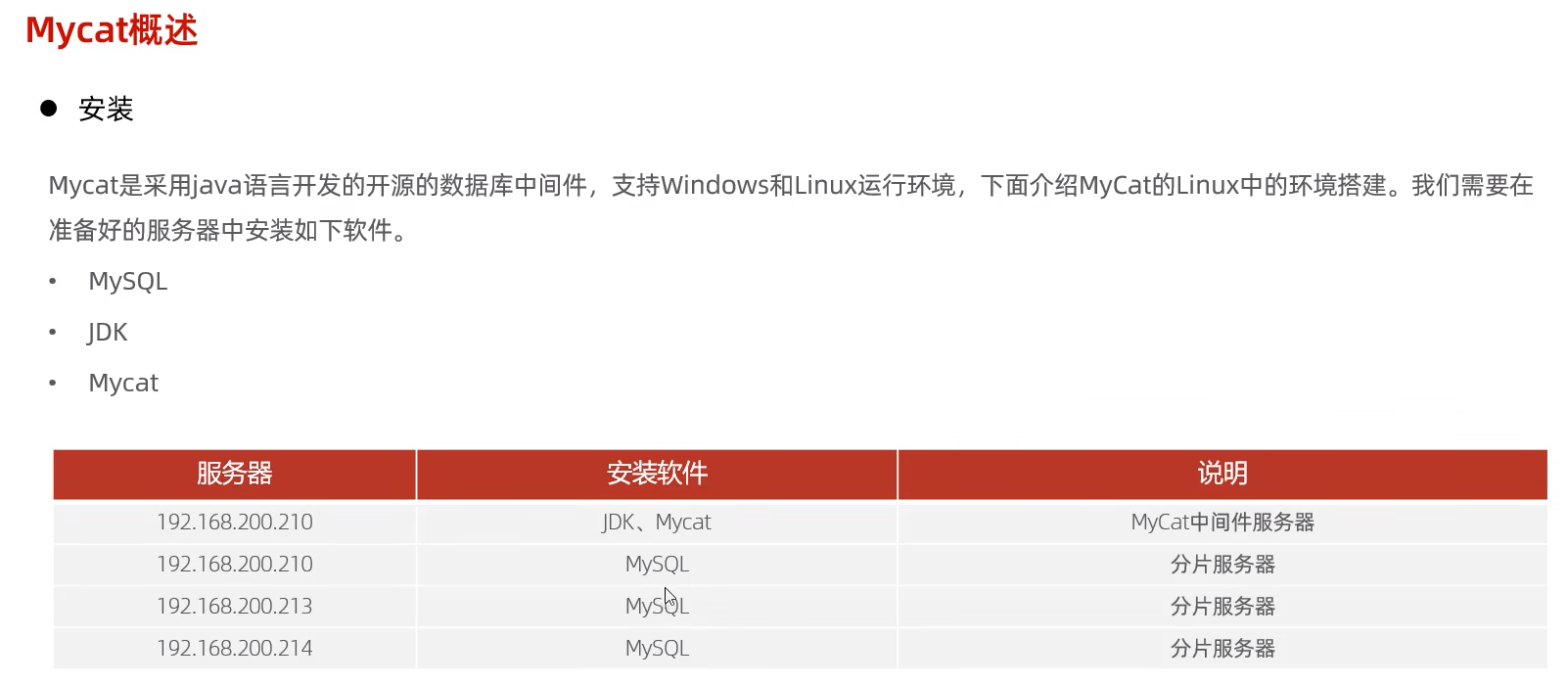 注意:此时一台服务器同时部署Mycat,JDK和一个数据库