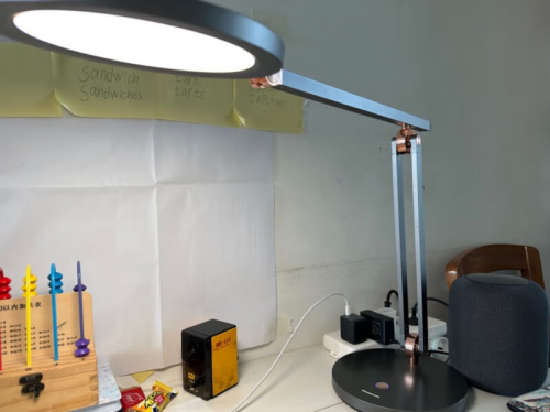 儿童护眼灯哪个牌子好?松下致佩采用的是圆盘形的发光面,搭载了双排灯珠并采用了光透镜技术、侧发光柔光技术,打造舒适环境氛围光照,照度广的同时亮度也很足。灯臂采用镂空设计,全铝灯身搭配磨砂质感富有设计感。灯臂和灯头均可多角度转动,确保光线均匀覆盖工作区域,只是那个横向的灯臂不能垂直放置,只能和竖向支架成一定角度的。配备了智能调光系统,亮度记忆功能,有按钮开关,也可以感应开关,但是感应有点太灵敏了。