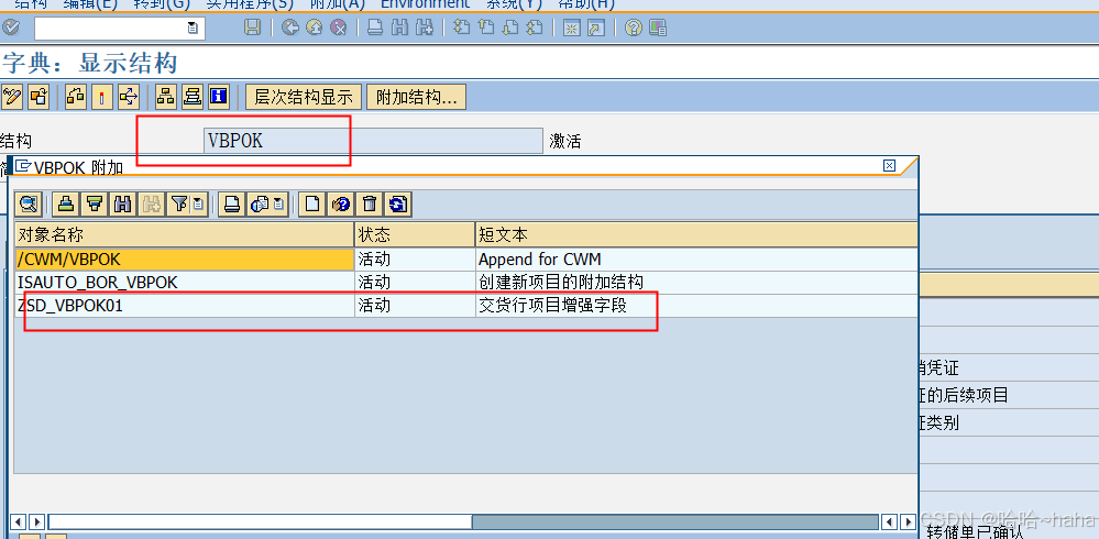 - 先在VBPOK结构中新增附加结构新增自定义字段